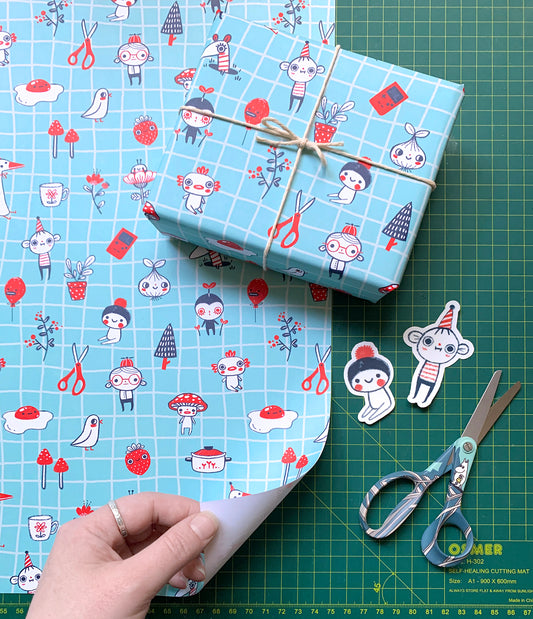 Mushfriends (Green) - Wrapping Paper - 3 PACK