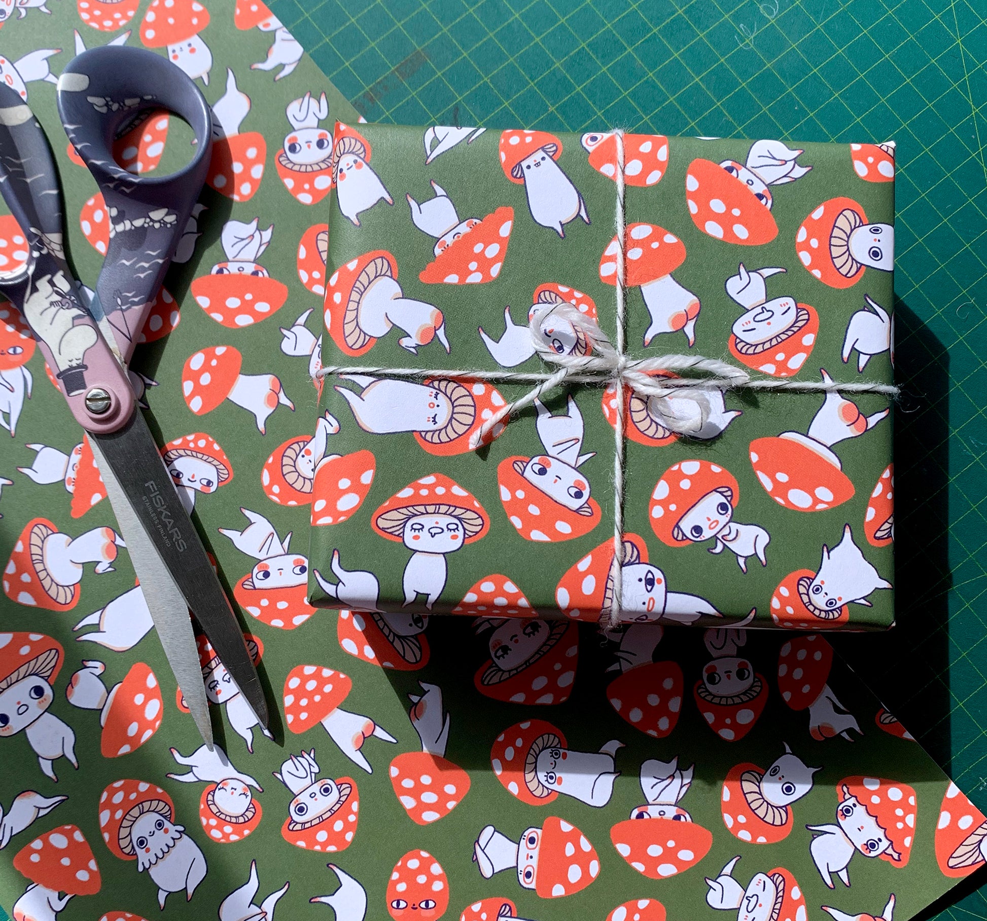 Mushfriends (Green) - Wrapping Paper - 3 PACK