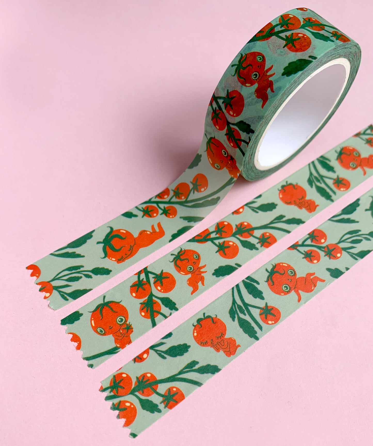 Listing is for x1 roll of 'Saucy Tomatoes!' washi tape, 15mm x 10m, in a recyclable card box.