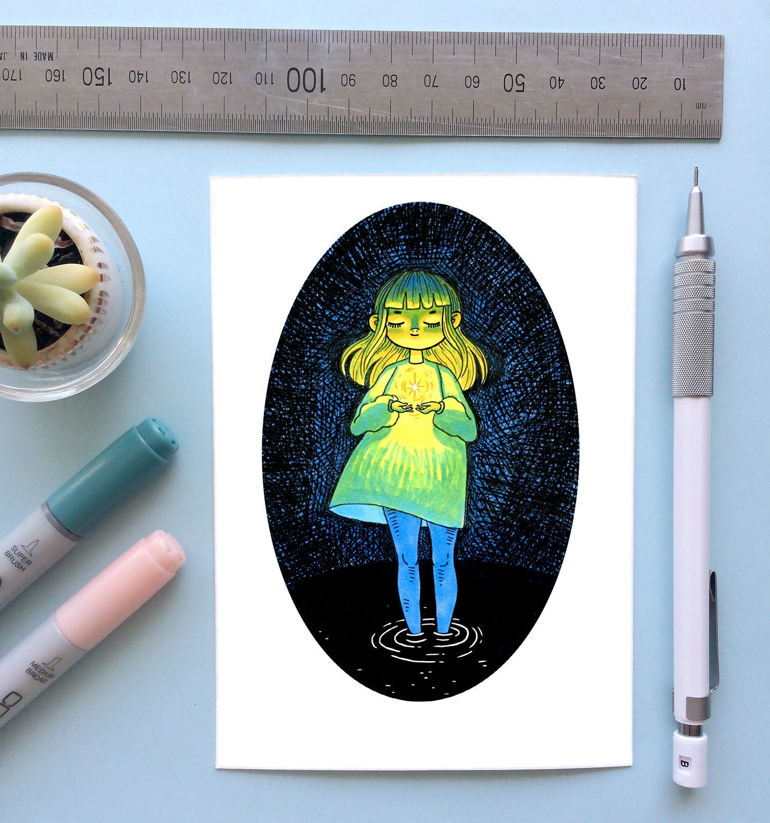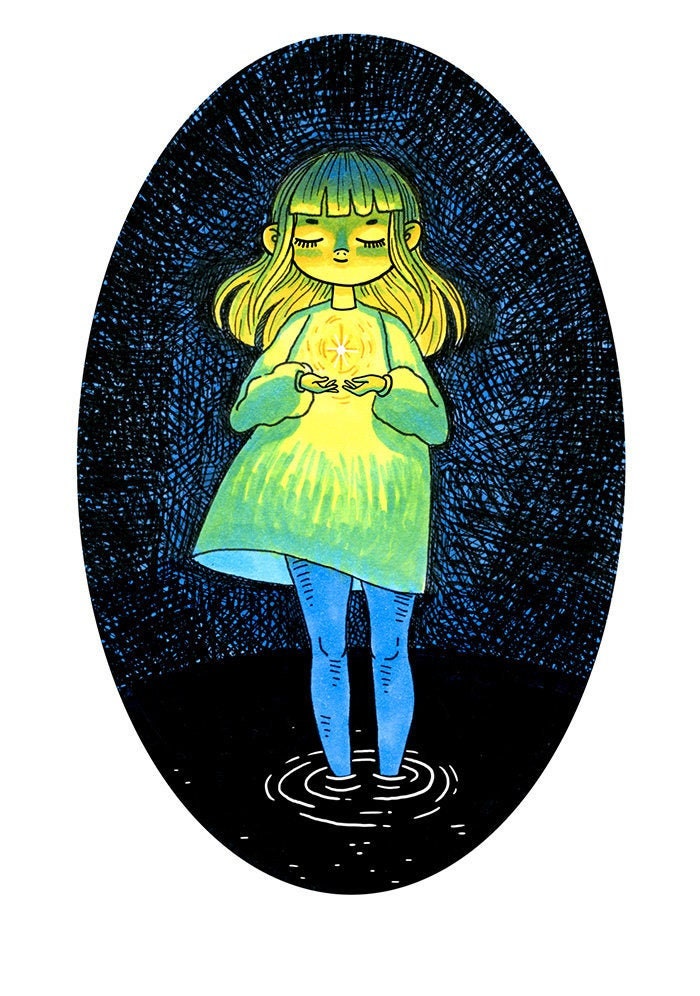 An archival quality mini print of my ink illustration 'Starlight', printed on 320 gsm, acid free 100% cotton rag paper.