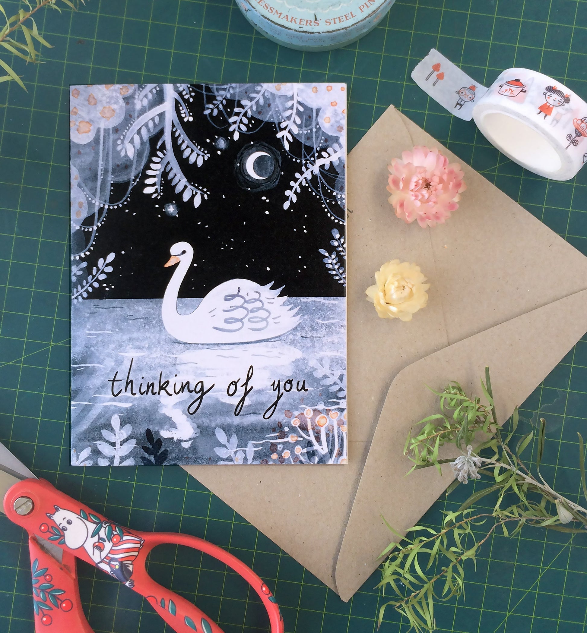 Card measures 10.5 x 14.8 cm (standard A6 size), and comes with a 100% recycled craft paper envelope sealed in a cellophane bag for protection.