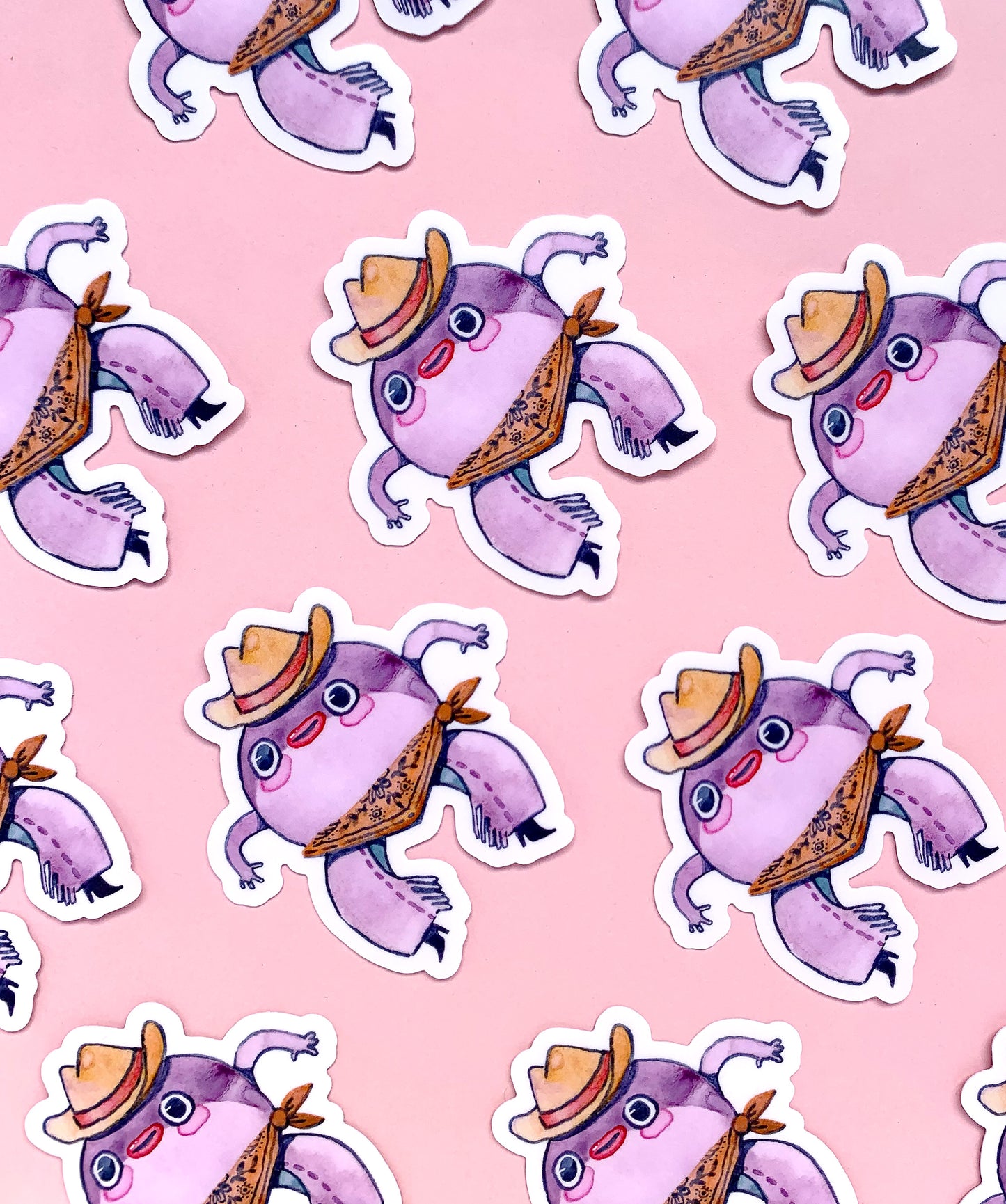 x1 happy-go-lucky watercolour toad cowboy sticker.