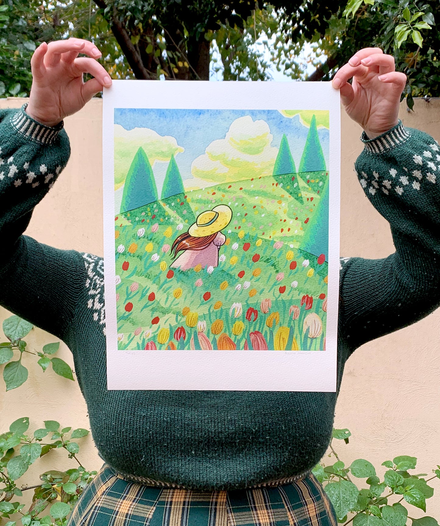 An archival quality print of my watercolour and gouache illustration 'Tulips', on 320 gsm, acid free 100% cotton rag paper.